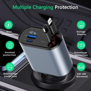 علشان دايمًا بتكون في الطريق ومحتاج شاحن عملي، سريع، وأنيق.. جبنالك شاحن السيارة الترند 4 في 1 اللي هيشحنلك موبايلك وإنت مطمن، وبدون كركبة كابلات! 💥🚗 – شاحن واحد يغنيك عن أي شاحن تاني! ⚡🔌