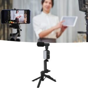 🎥📱 ترايبود بكامله استوديو متنقل! فلاش 🔦 + ميك 🎙️ + ريموت بلوتوث ، وكل اللي محتاجه علشان تطلع فيديوهات برو! -